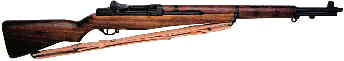 The M-1 was the standard weapon of the US infantry soldier in World War II. It is semi-automatic, fed by a clip that holds eight caliber .30 cartridges. It is gas operated, self-loading, and a shoulder weapon. The gun weighs 8.94 pounds, is 43 inches long, with the barrel itself being 22.30 inches. The Garand has a muzzle velocity of 2,760 feet per second, and a maximum range of 5,500 yards. A bayonet can be attached to the M-1, giving it a reach of about five feet. [Note: .30 means the caliber of the weapon is 30/100 of an inch. The caliber of a weapon is the interior diameter, or size, of the bore.]